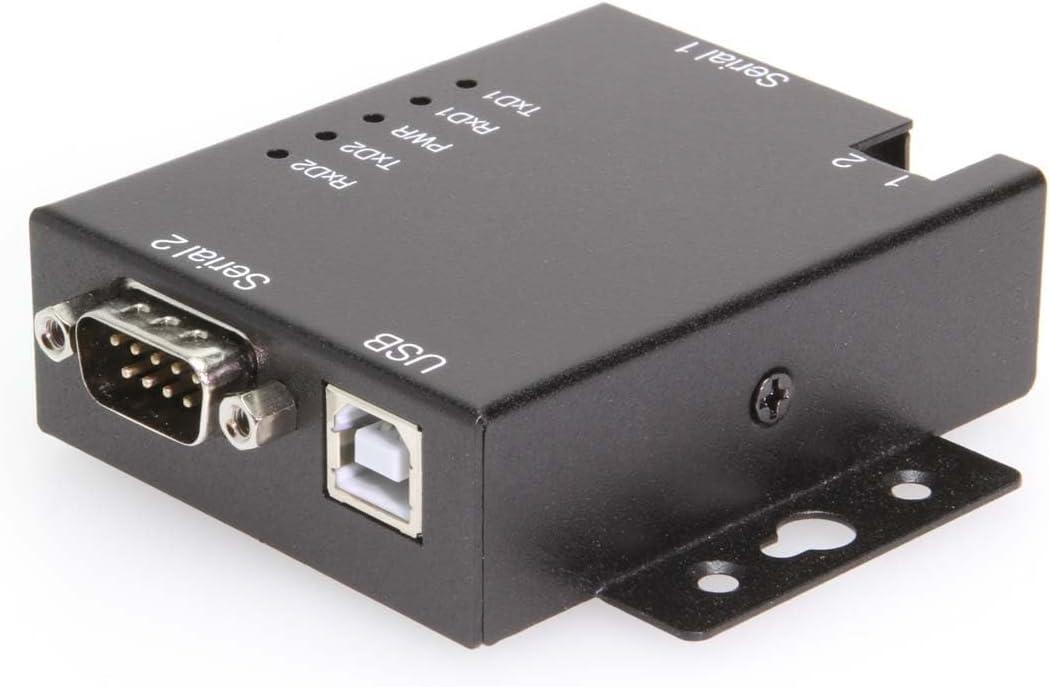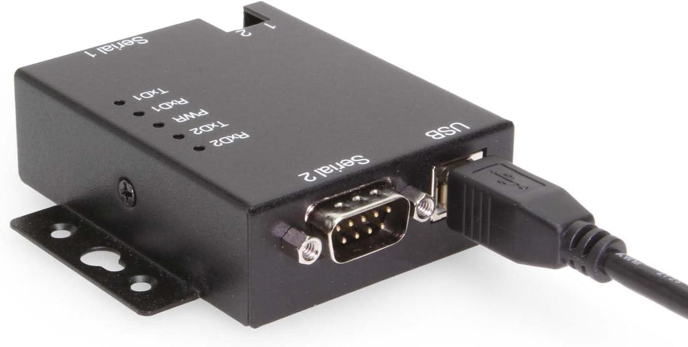 RS-232 | 128 Bytes Receive | 384 Bytes Transmit Superior Build Quality: Housed in a rugged steel chassis with built in mountable flanges, the serial adapter hub is perfect for installations in labs, warehouses, or heavy machinery. Safe Industrial Connections: Designed for use with Bar Code Scanners, Time Clocks, Label Printers, Point of Sale Terminals, Receipt Printers, and more the USB to Serial Adapter offers 15kV surge protection for connected devices. Expand Your Serial Capabilities: Connect 2 legacy 9-pin serial device through a USB-A port to add legacy functionality to newer technologies with no serial port connections. COM Retention: COM Ports are fully configurable, and after reboots, port assignments are preserved. USB Power: Power is drawn from a USB connection, no bulky power supply or power outlet is required. Upstream: 1 USB port, Type B Female Connector Downstream: 2 Male DB9, w/ nuts LEDs: Power, TX / RX Description Introduction: The USB-2COM-M 2 Port USB to Serial RS-232 DB-9 Adapter is designed for industrial applications with its metal housing and mounting brackets to make serial port expansion quick and simple. When connecting to a host USB port on your computer or USB hub, the USB to Serial Dual Port Adapter instantly adds two RS-232 serial communication ports to your system for current and future serial applications. Connection the USB to Serial Adapter to the host USB port, the adapter is automatically detected and installed. There are no IRQ & COM port conflicts or configurations since the ports do not require any additional IRQ, DMA, memory as resources on the system. An optional feature to supply power output of 5V, 150mA through PIN-1 & 2 of terminal block to the serial devices requiring power. The 2 Port USB to Serial RS-232 DB-9 Adapter provides instant connectivity with modems, ISDN TAs, PDAs, handheld & pocket PCs, digital cameras, POS, serial printers. It is suitable for remote access, retail and industrial applications, data collection and other applications requiring high speed RS-232 serial communication ports. Features: Adds two industrial RS-232 serial ports by connecting to a USB port Optional feature to supply power output of 5V, 150mA through PIN-1 & 2 of terminal block to the serial devices requiring power Installed as standard Windows COM port SECC metal chassis with DIN rail bracket Full RS-232 modem control signals and hardware/software flow control RS-232 data signals: TxD, RxD, RTS, CTS, DSR, DTR, DCD, RI, GND High speed serial port with the baud rate up to 921.6K bps 128 byte transmit FIFO & 384 byte receive FIFO Non-standard baudrates supported LEDs of Power, TxD and RxD for easy port monitoring and diagnostics Serial port protected with surge protection of 15KV Powered by USB port, no external power adapter required Easy plug and play installation and RS-232 device connection COM port number assigned can be changed to any COM port number required Works with USB 1.1 & 2.0 host port Item Dimensions: 2.84(L)(3.24in DB-9 to DB-9)x2.28(W)x.877in(H) OS Support: Windows XP, Vista, Windows 7, Windows 8, and Windows 10 Linux and Mac OS 10.X Package Contents: 2 Port USB to Serial RS-232 DB-9 Adapter Device. 3 foot USB A to B device cable. Driver Disc/Manual. (not shown) *Surface Mounting screws not included. Specifications Product Specifications Environmental Operating Temperature 0°C to 55°C (32°F to 131°F) Storage Temperature -20 to 75°C (-4 to 167°F) Humidity 5% ~ 95% (non-condensing) Performance ESD Protection 15KV Surge Protection Hardware Chipset FTDI LED Indicators Power, TX / RX Product Information Warranty 1 year from date of purchase Power Adapter Output Current 150mA Adapter Output Voltage 5V External Power Required No Software OS Support Win 11, Linux, Mac OSX, Win 10, Win 7, Win 8 Serial Attributes RS Signals DCD, RxD, TxD, DTR, GND, DSR, RTS, CTS, RI Serial Standards RS232 Baud Rate 921.6K bps FIFO Receive 128 bytes FIFO Transmit 384 bytes Data Bits 7, 8 Parity None, Even, Odd, Mark, Space Stop Bits 1, 1.5, 2 Flow Control Hardware (RTS, CTS), XON/XOFF USB USB Type USB 2.0 Upstream USB Ports 1 Type-B Female USB Screw Lock Compatible Yes Mechanical Color Black Item Dimensions (L × W × H) 2.83 × 2.24 × 0.87 in. Item Weight 0.306 lbs. Mounting Style Din-Rail Mount, Surface Mount Ports 2 Serial Ports Material of Construction Steel Compliance Country of Origin Taiwan Compliance RoHS, TAA Other Data Connector DB9 Male w/ Nuts Chip Model FT2232D, ZT213LFEA Warranty 1 year from date of purchase Alias Sku USBG-2com-m Weight .65 lbs Dimensions 5 × 4 × 2.5 in UPC: 729440690748