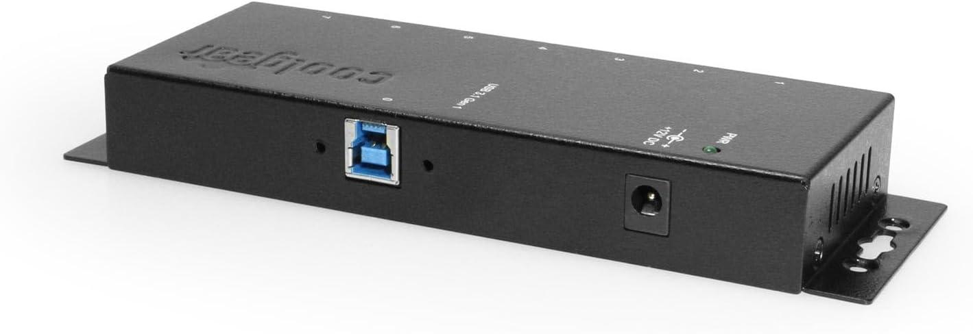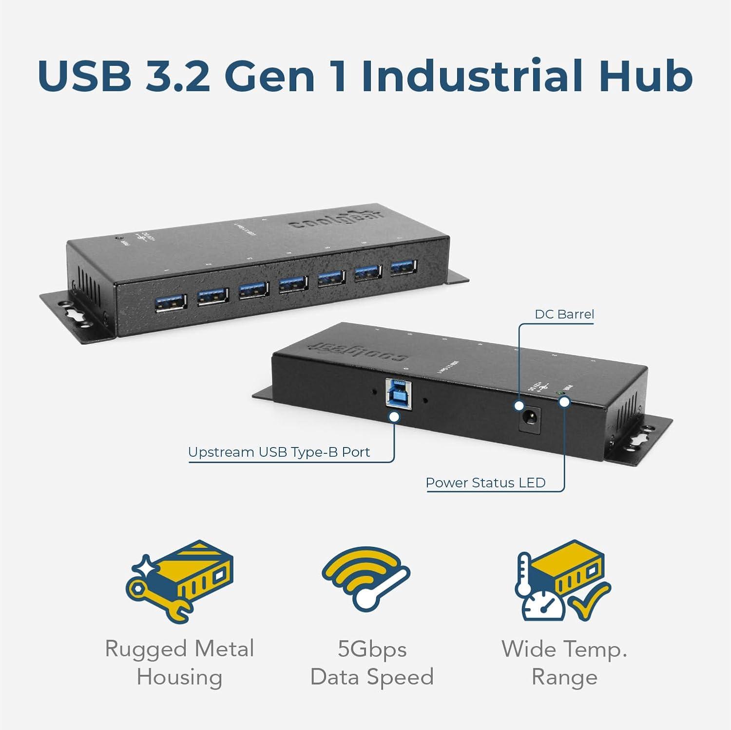 Coolgear Industrial 7-Port USB 2.0 Hub with Secure Screw-Locking Ports | Surface & DIN-Rail Mountable | 480 Mbps Data
