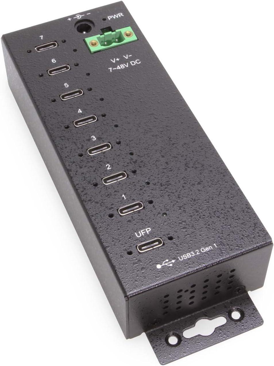 Coolgear 7-Port USB-C 3.2 Hub with 5Gbps Data, Surge Protection, Screw-Lock Ports, Wide Power Input for Industrial Use