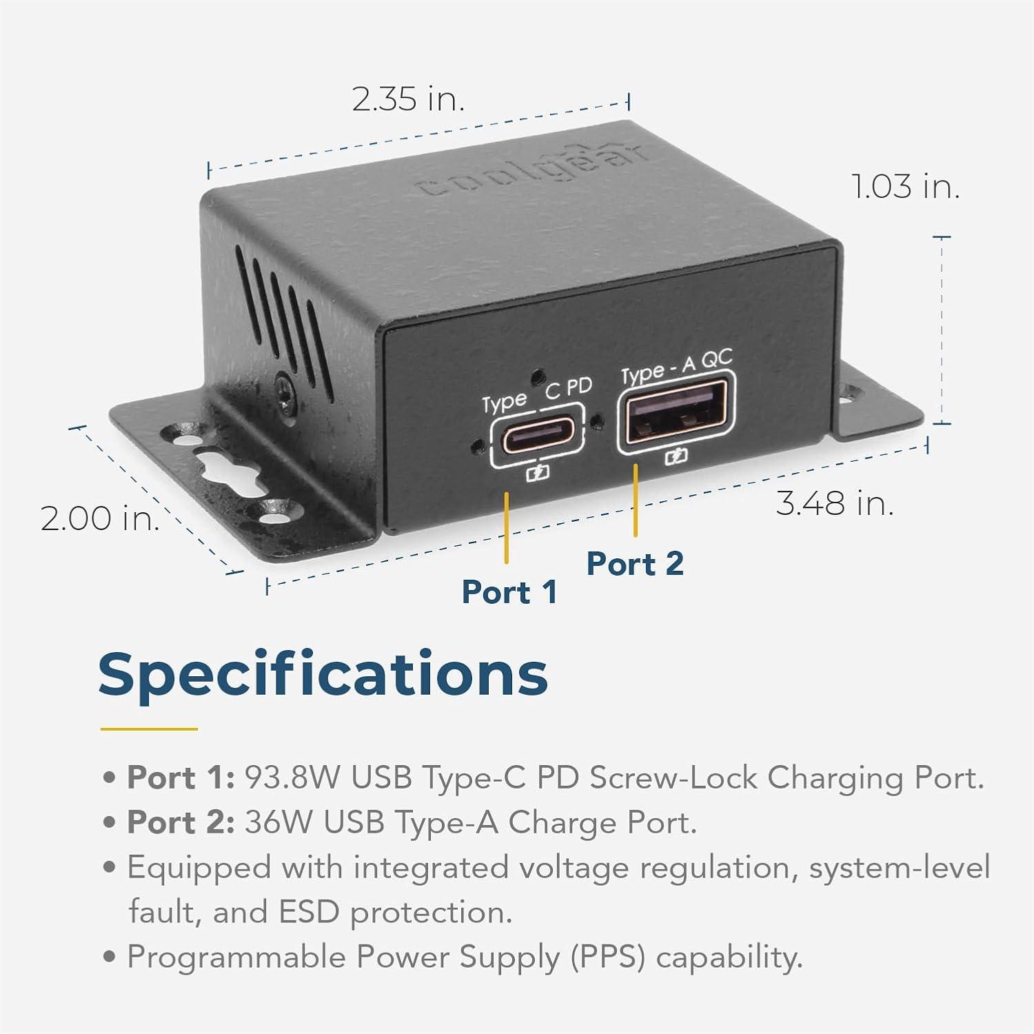 imageCoolgear ChargeIT Mini 100W USB TypeC Power Delivery Charger  Secure ScrewLock Connection MultiProtocol Fast Charging for Industrial ampamp Heavy Duty Use