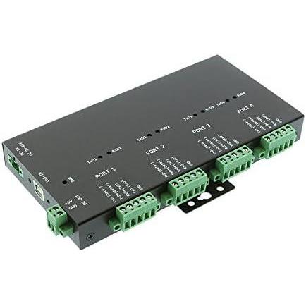 Terminal block serial adapter for RS-232/422/485 Our series of Industrial USB 2.0 to terminal block serial adapters support RS-232, RS-422, and RS485 and are designed with the user in mind, the adapter is with DIP switch control for each individual port connection to suit your applications. Supports 15KV ESD protection and 600W surge protection for all serial signals Uses FTDI FT4232H USB 2.0 to quad UART chip Incorporates DIP switch control over each individual port. Supports RS-232, RS-422, and RS-485 signals. Description Serial communication through terminal block connection The USB2-4COMi-TB USB to quad port industrial serial adapter is designed to make RS-422 and RS-485 serial port expansion quick and simple through its terminal block connection. Controlled by DIP switches, each terminal block serial port can be individually designated for the signal your application demands. The USB 2.0 to 4 port serial adapter supports 15KV ESD protection and 600W surge protection for all serial signals. By connecting to the USB port on your computer or available USB hub, the USB to industrial serial adapter instantly adds four RS-232/422/485 interface serial communication ports to your system while taking advantage of both the Plug-and-Play, and Hot-Plug features of the USB bus. The USB2-4COMi-TB industrial serial adapter makes it very easy to add 4 industrial communication ports to your system though its terminal block connection and controlled by DIP switch controls located within the metal chassis of the adapter. Product Features Supports USB 1.1 and USB 2.0 transfer speeds from 1.5 up to 480 Mbps, automatic link and speed detection. Adds four high-speed RS-232/422/485 serial ports via USB connection. 2K byte receive buffer. 2K byte transmit buffer for high speed data throughput. Requires no IRQ, DMA, I/O port. Data rates: 300 bps to 921.6K bps. Each serial port supports 5-pin screw-lock-type terminal block connector. Auto-transmit buffer control for 2-wire RS-485 half-duplex operation. Biasing and Termination resistors installed on-board. Supports RS-232 3-wire signals: RxD, TxD, GND Supports RS-422, RS-485 4-wire signals: TxD-, TxD+, RxD+, RxD- Supports RS-485 2-wire signals: data-, data+ Monitor LEDS of TxD, RxD indicating port status AC to DC-12V, 1A switching power supply included Virtual COM port drivers available for Windows 10, 8.1, 8, 7, Vista, 2003, 2000 Industrial grade metal case with DIN-rail ears for Din-rail mounting. Chipset: FTDI FT4232H USB 2.0 to quad UART chip Dimensions: 192.42 x 122.22 x 23.60 mm (L×W×H), dimensions are to DIN rail(W), to power plug(L) Package Contents USB2-4COMi-TB serial adapter Power adapter USB cable *Surface Mounting screws not included. Specifications Product Specifications Environmental Operating Temperature 0 to 60C Hardware Chipset FTDI Power Input Voltage +9~48V DC Software OS Support Win 10, Win 7, Win 8, Win 8.1, Win Vista Serial Attributes Serial Standards RS232, RS422, RS485 USB USB Type USB 2.0 Mechanical Color Black Mounting Style Din-Rail Ports 1 USB Port Compliance Country of Origin Taiwan Certifications CE, FCC Compliance RoHS, TAA Other Data Connector 5-Pin Terminal Block Weight 1.981 lbs Dimensions 11.250 × 5.687 × 2.500 in UPC: 736983902436