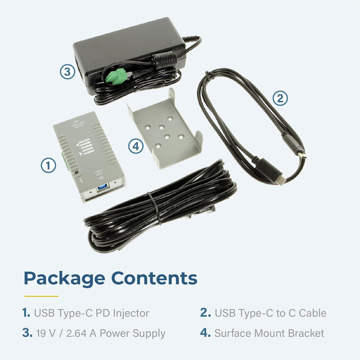 Coolgear Industrial USB-C to USB-B Power Delivery Injector, 60W/100W PD, Flexible Mounting