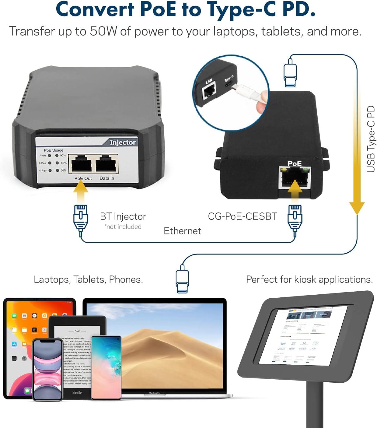 [ Intelligent PoE Conversion ] : Converts PoE input to Type-C PD, eliminating the need for separate adapters or chargers.