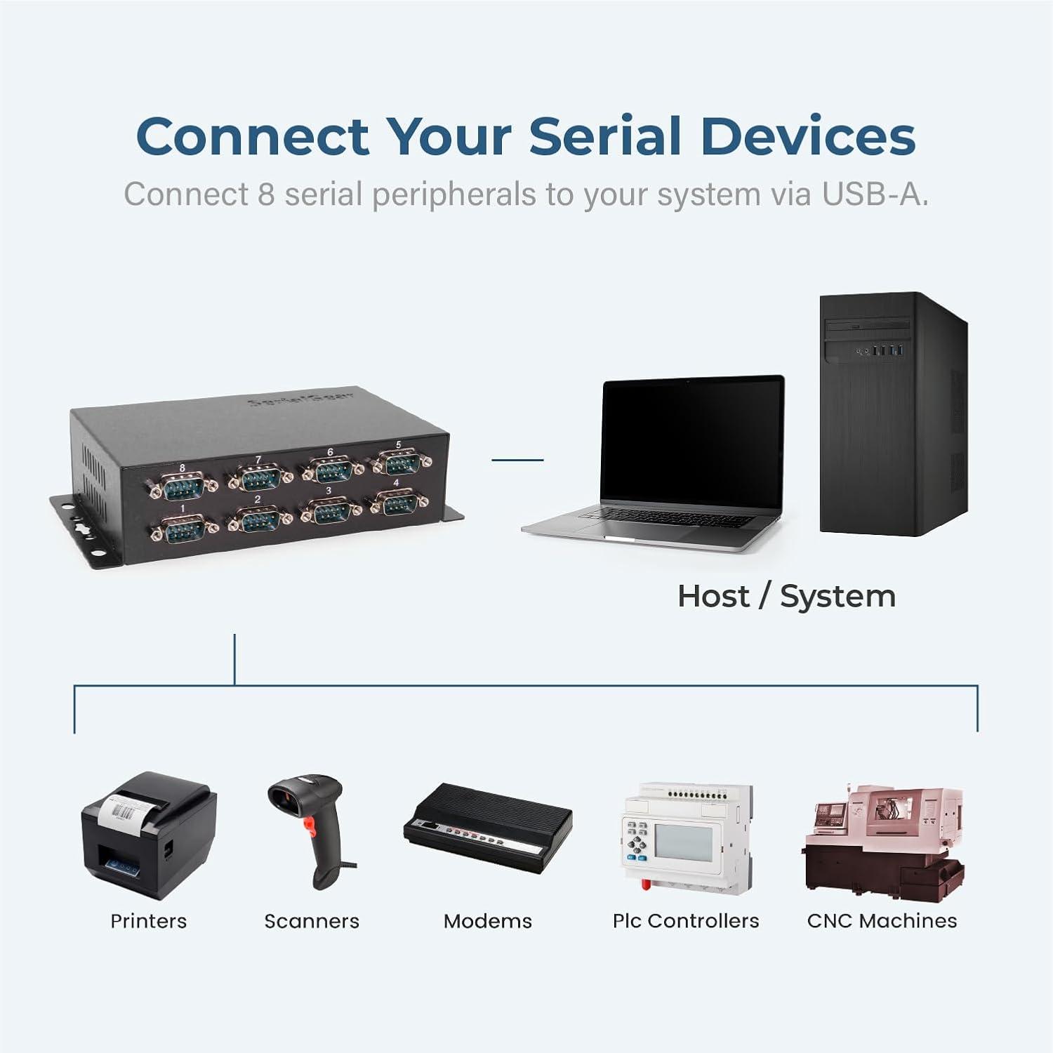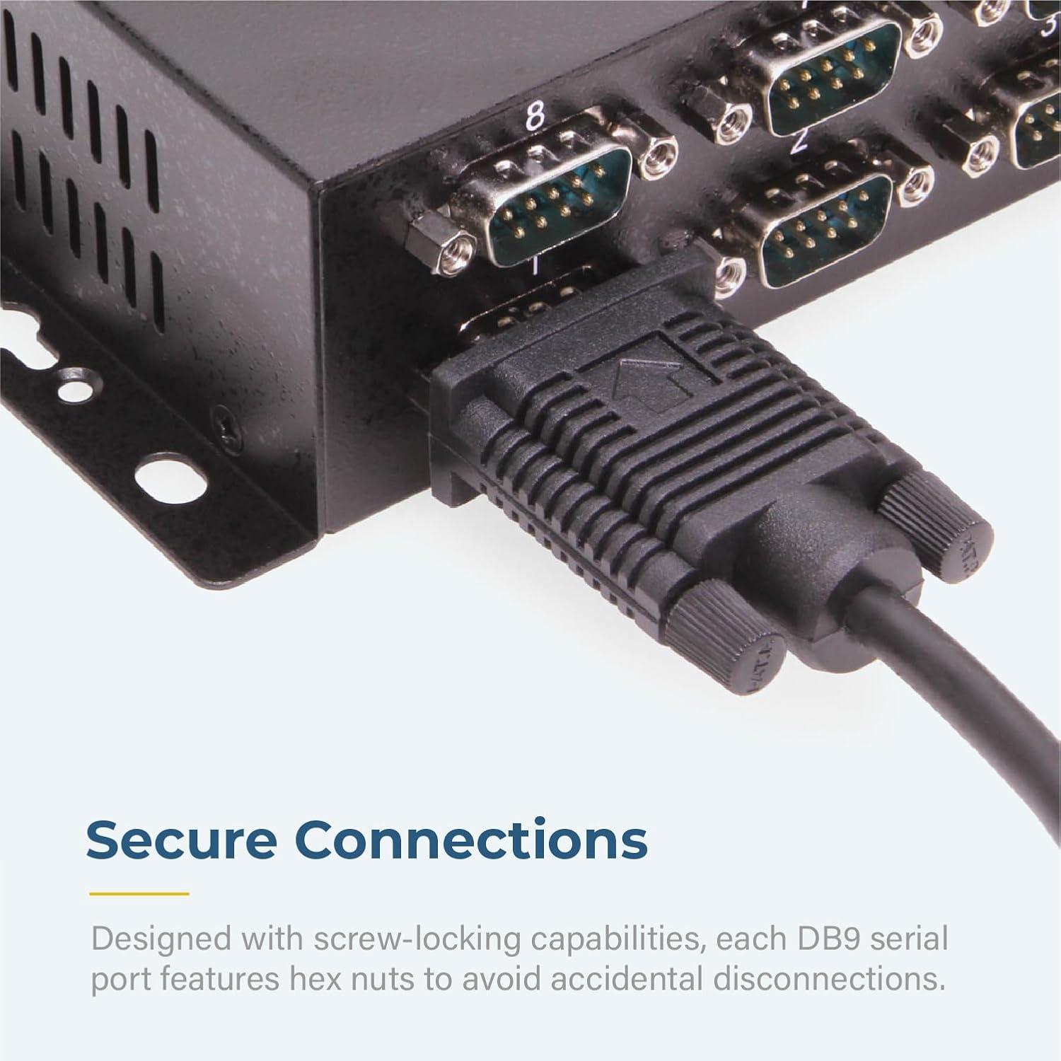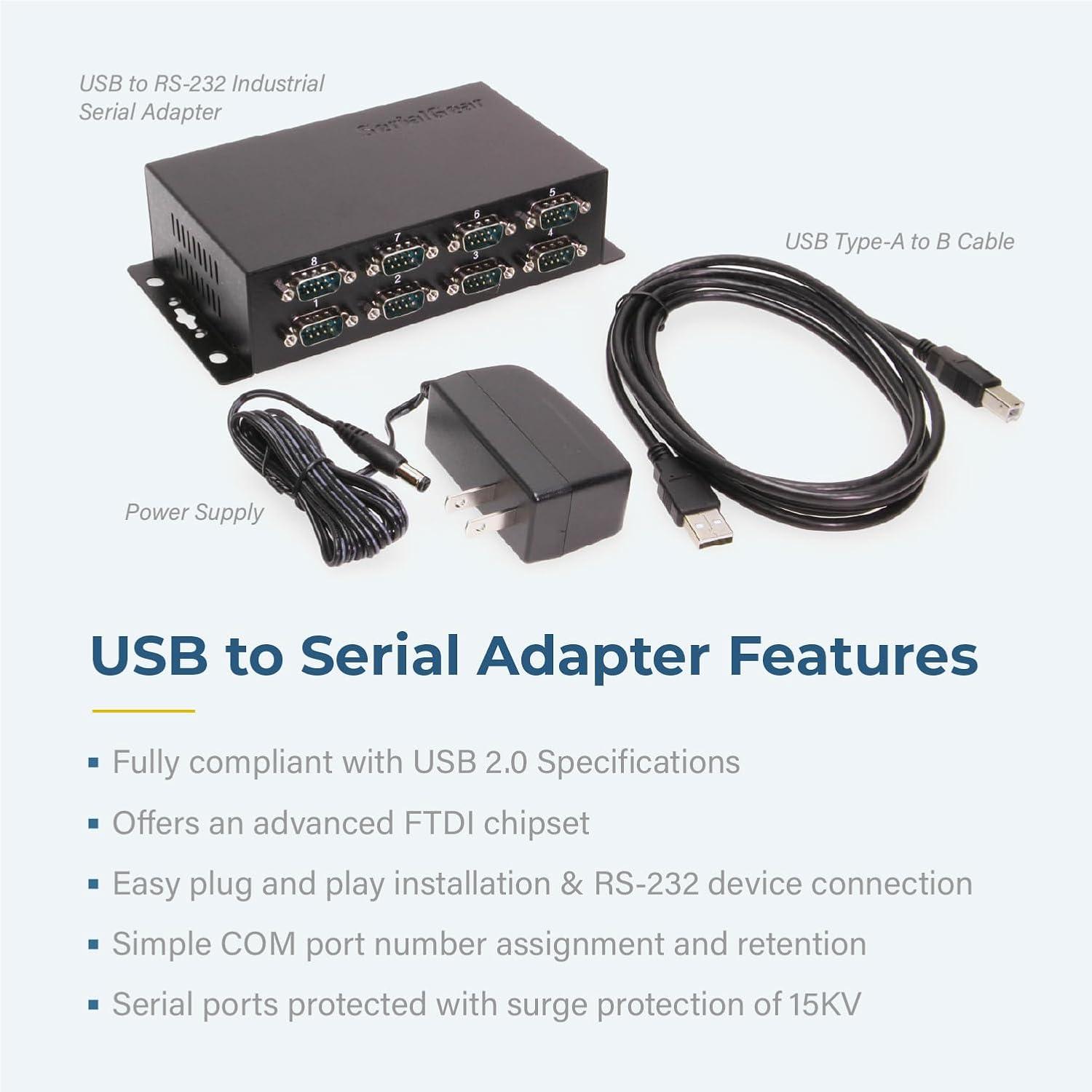 imageIndustrial 8 Port USB to RS232 Adapter with FTDI Chip High Speed 9216kbps Bus Powered Connect Legacy Serial DB9 Devices Printers Scanners POS Terminals to Modern USB Systems